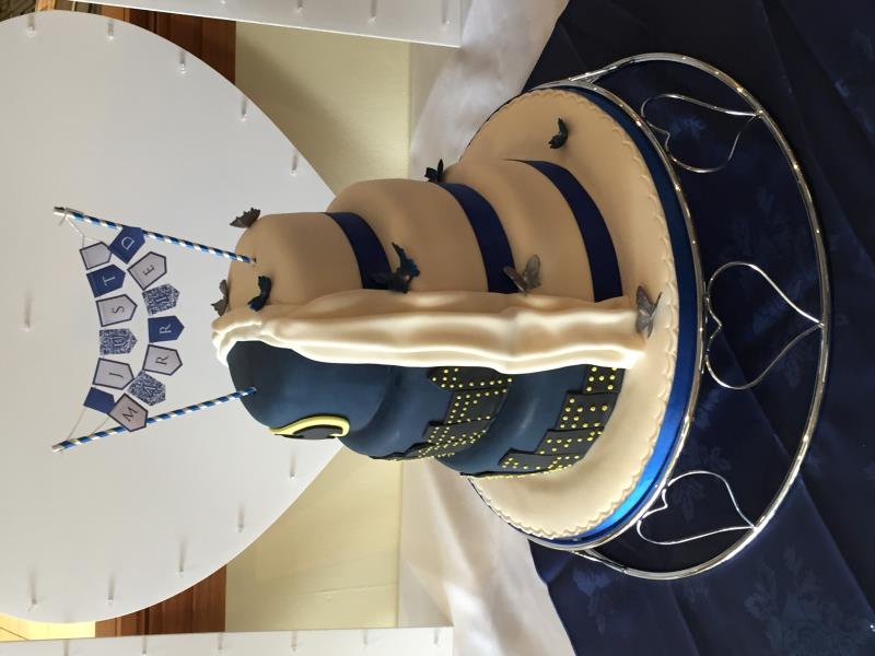 Dual aspect wedding cake, traditional on one half and Batman on the other for Niki & Michael's wedding in Blackpool. Made from vanilla sponge
